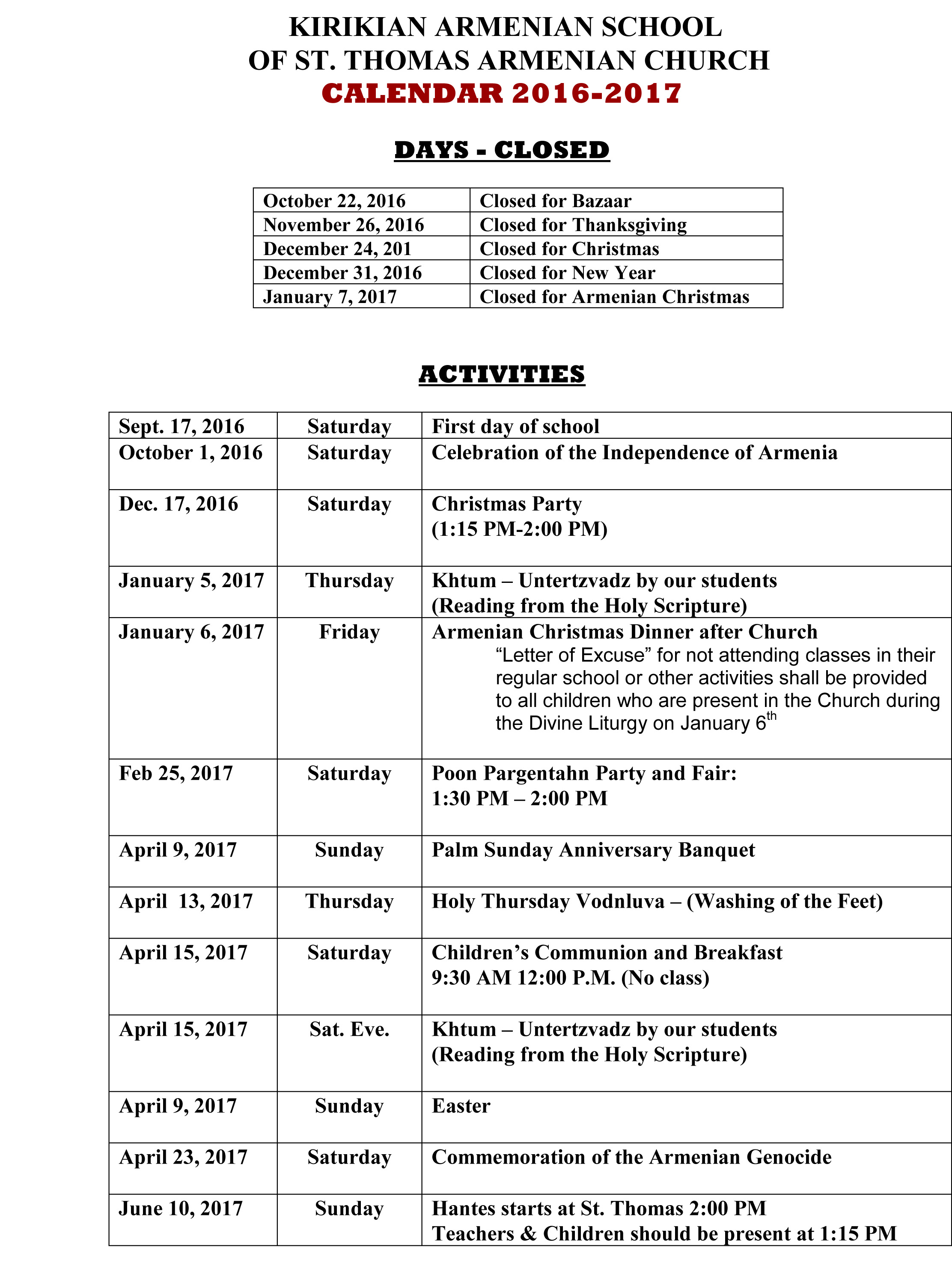 Route 9W & East Clinton Ave. P.O. Box 53 Tenafly, NJ 07670 Telephone: (201) 567-5446 Fax: (201) 567-5420 E-Mail: admin@armenianschoolstthomas.com |