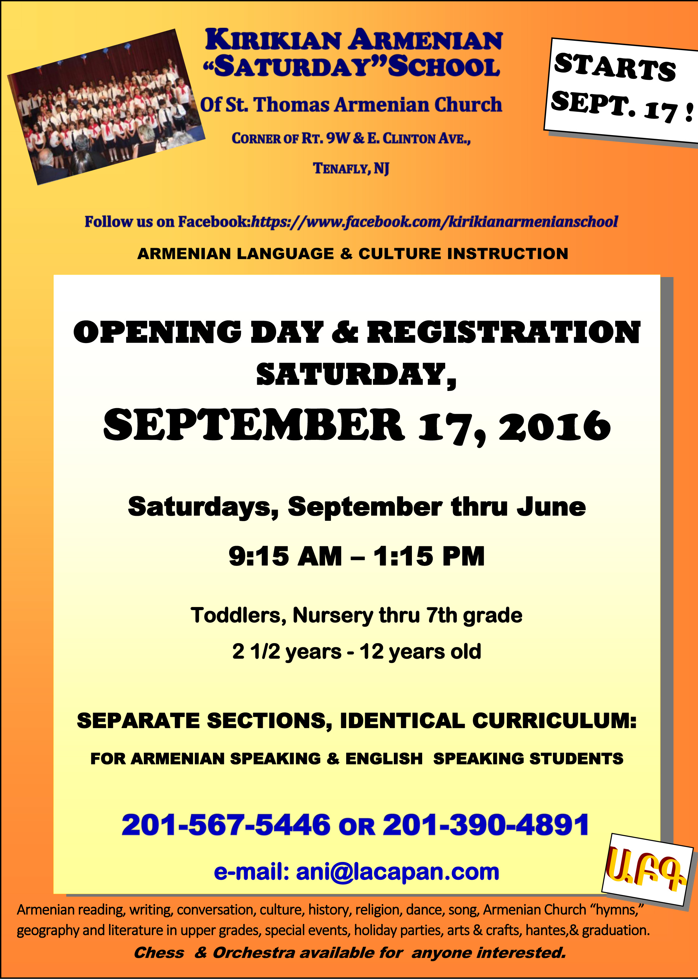 Alternate contact: Mrs. Madlen Setian (845) 425-8683 or e-mail here.